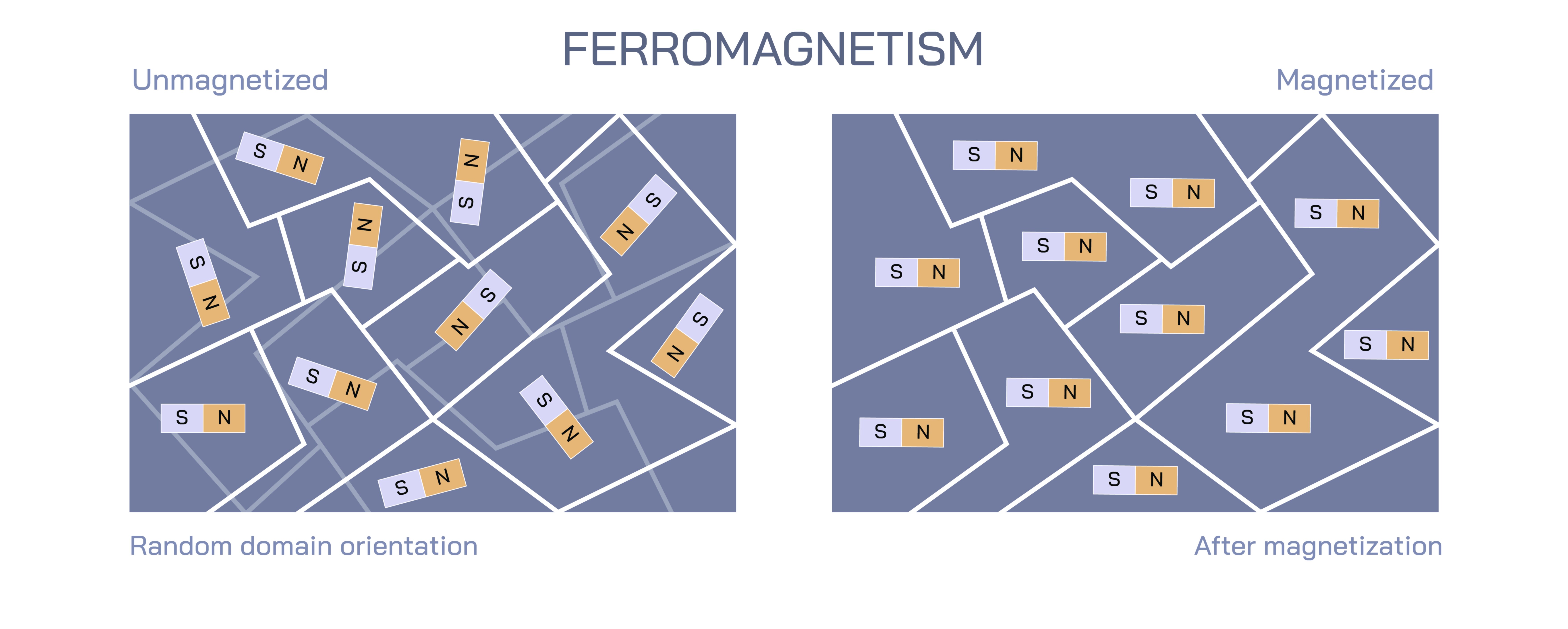 Ferromagnetism Vector Illustration — Magnetic Domains and Strong Atomic Alignment Explained for Physics Education