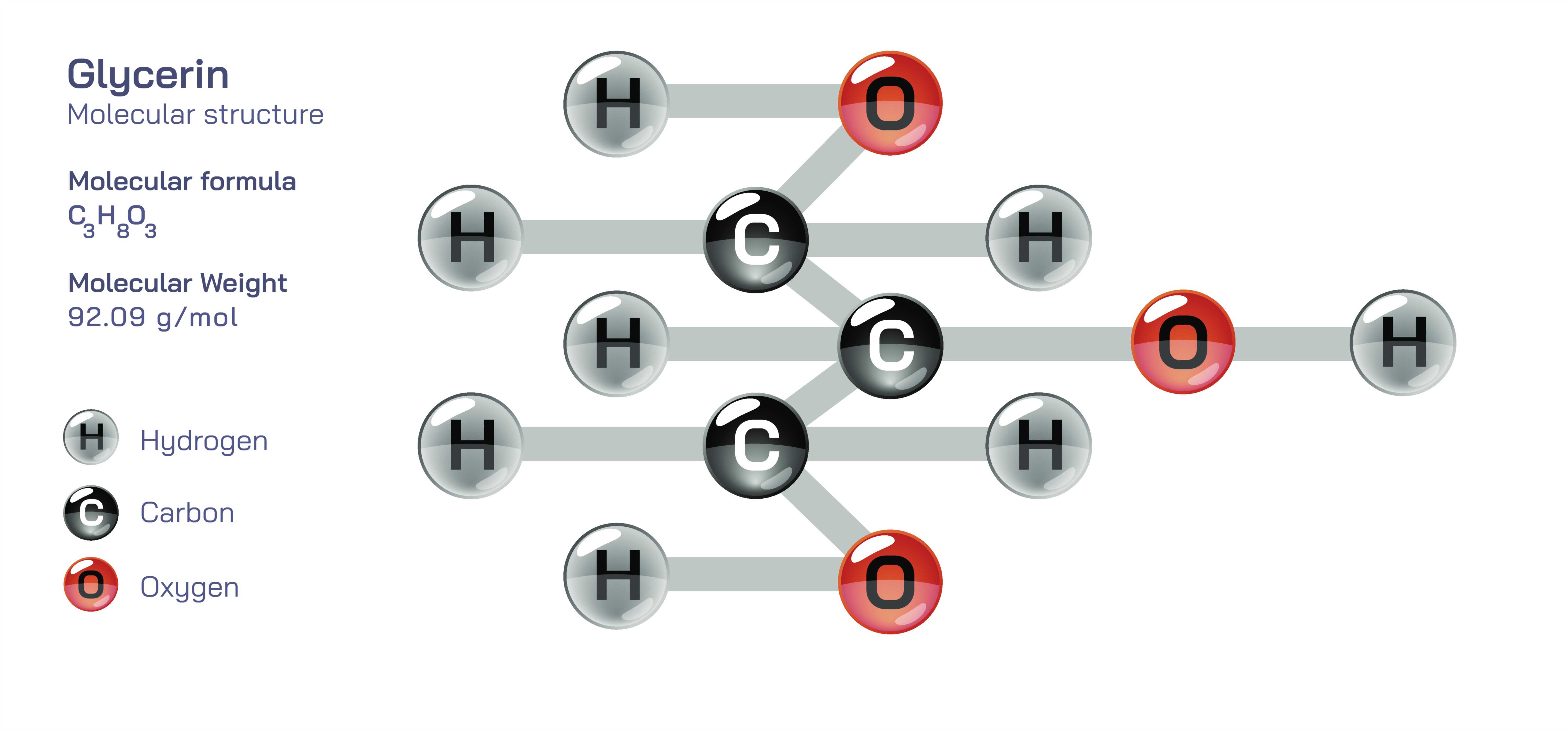 Glycerin, also known as glycerol, is one of the simplest and most important organic compounds in biochemistry and industrial chemistry, yet its true significance becomes clear only when its molecular structure is examined in detail and connected to its physical properties, chemical reactivity, and wide applications. Although diagrams often depict glycerin as a chain of three carbon atoms with attached hydrogen and oxygen groups, understanding the compound conceptually reveals why this small molecule plays such an enormous role in biological systems, pharmaceuticals, cosmetics, food chemistry, and material science. At its core, glycerin is classified as a trihydroxy alcohol, which means it contains three hydroxyl (–OH) groups attached to a carbon skeleton. These three hydroxyl groups shape its identity, making glycerin simultaneously highly polar, strongly hydrophilic, chemically flexible, and exceptionally stable. Every characteristic that makes glycerin useful arises from this structural foundation.