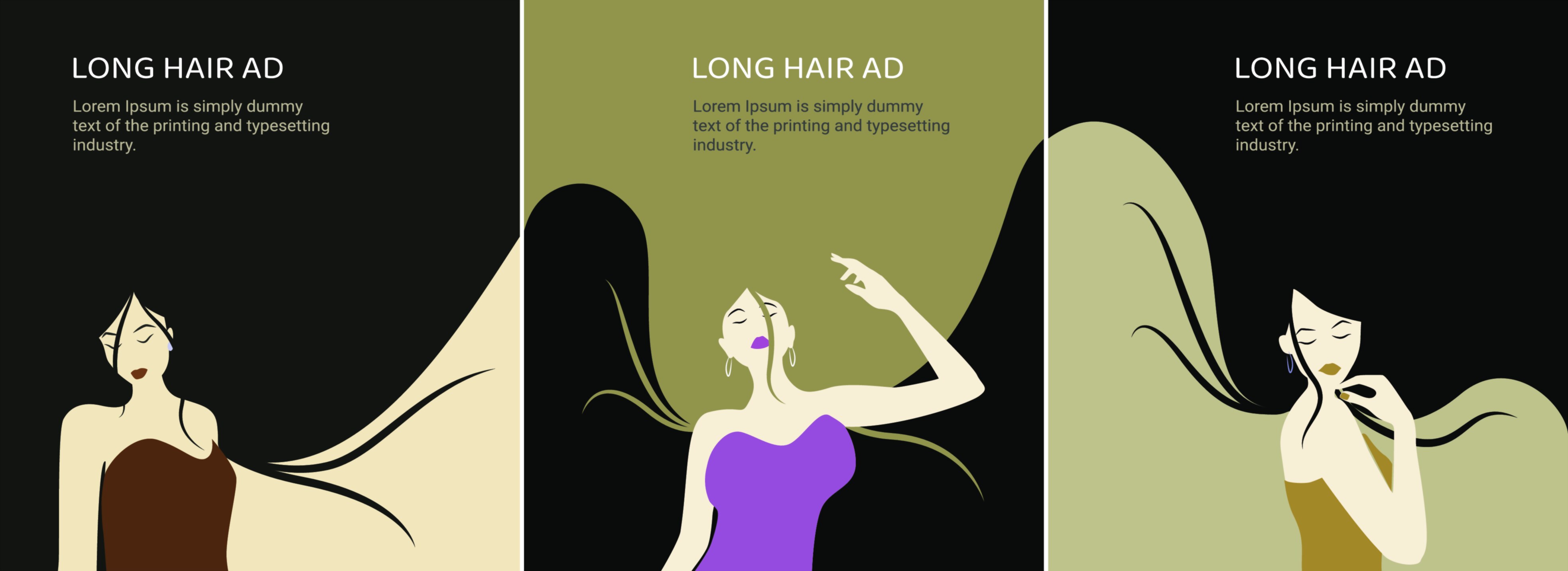 Through visual storytelling focused on hair as the protagonist, a hair ad template vector illustration connects branding, beauty, and emotion into one irresistible message: your ideal hair is possible, and this product is the key to unlocking it.