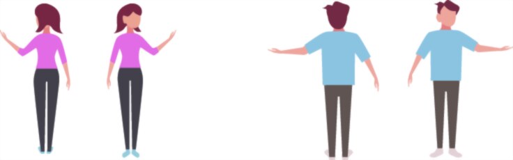 An interesting aspect of using front and back illustrations together is the psychological sense of completeness they communicate. The viewer subconsciously perceives the figures as whole, approachable, and fully presented, making the illustration feel balanced. This dual representation reflects the idea that human identity is multi-directional; no one is defined by a single perspective. Designers and viewers alike benefit from this visual openness because it supports clarity, transparency, and realism in communication. Whether the image is used for professional or creative purposes, the dual-view format signals that the subject has been observed with full dimensional honesty, leaving no ambiguity about structure, design, or physical interaction.