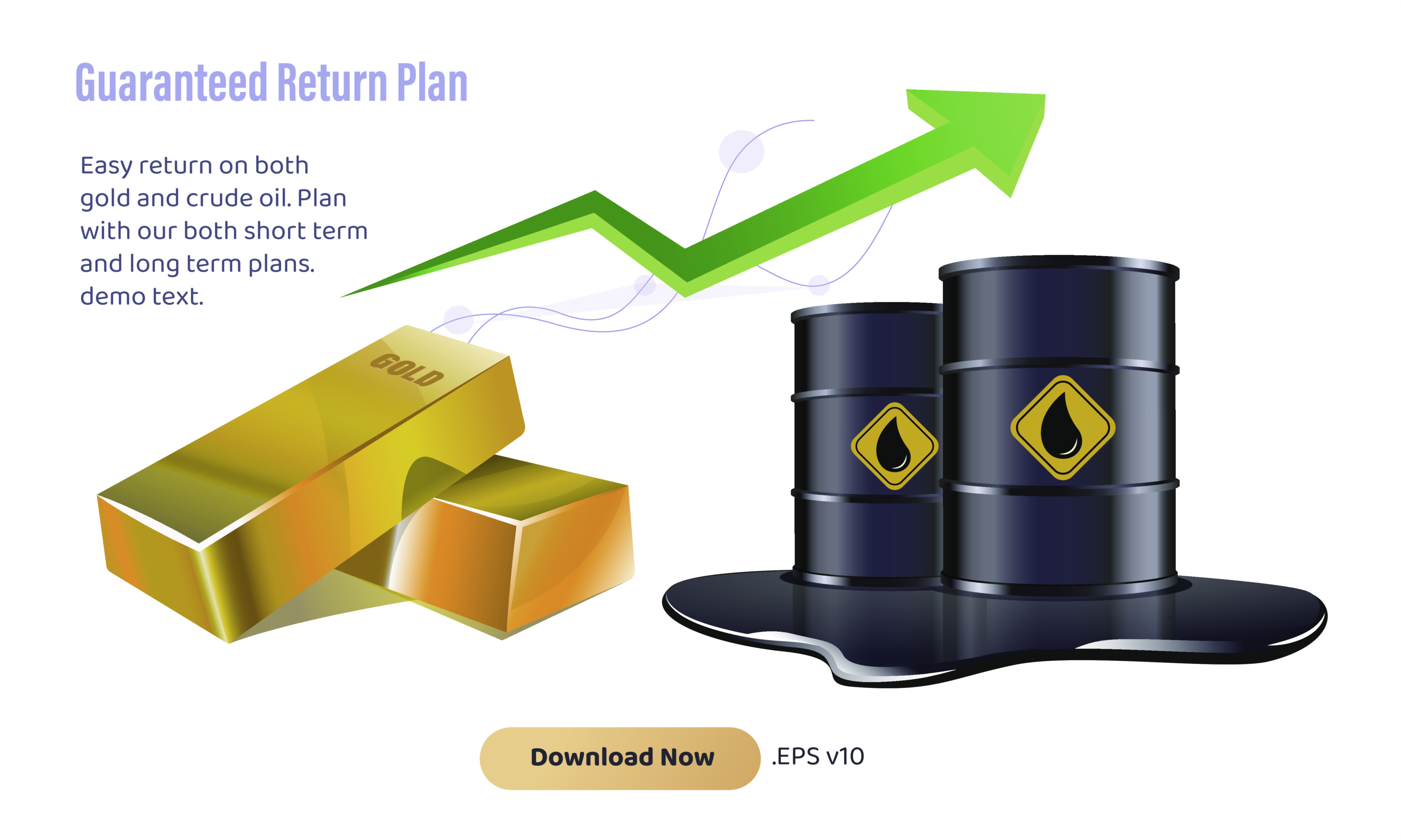 A comprehensive investing plan built around crude oil and gold is more than a simple choice of commodities; it represents a disciplined financial strategy that blends growth potential with crisis-proof protection to create a portfolio capable of surviving and thriving through different economic phases. When expressed visually in a vector illustration, crude oil is often symbolized by refinery towers, oil barrels, drilling rigs, and upward price arrows to represent industrial expansion and energy-driven wealth, while gold is portrayed through bullion bars, shimmering coins, and secure vault imagery that communicate monetary safety, wealth preservation, and inflation resistance. The coexistence of these two contrasting symbols in a single illustration mirrors the logic of an intelligent financial plan: crude oil embodies the performance side of wealth creation during economic expansion, while gold safeguards accumulated capital in times of volatility, recession, inflation, or geopolitical disruption. Together, they form a blueprint for strategic financial resilience rooted in diversification rather than speculation, and the illustration provides an intuitive visual summary of a sophisticated investment philosophy that would otherwise require extensive financial literacy to articulate.