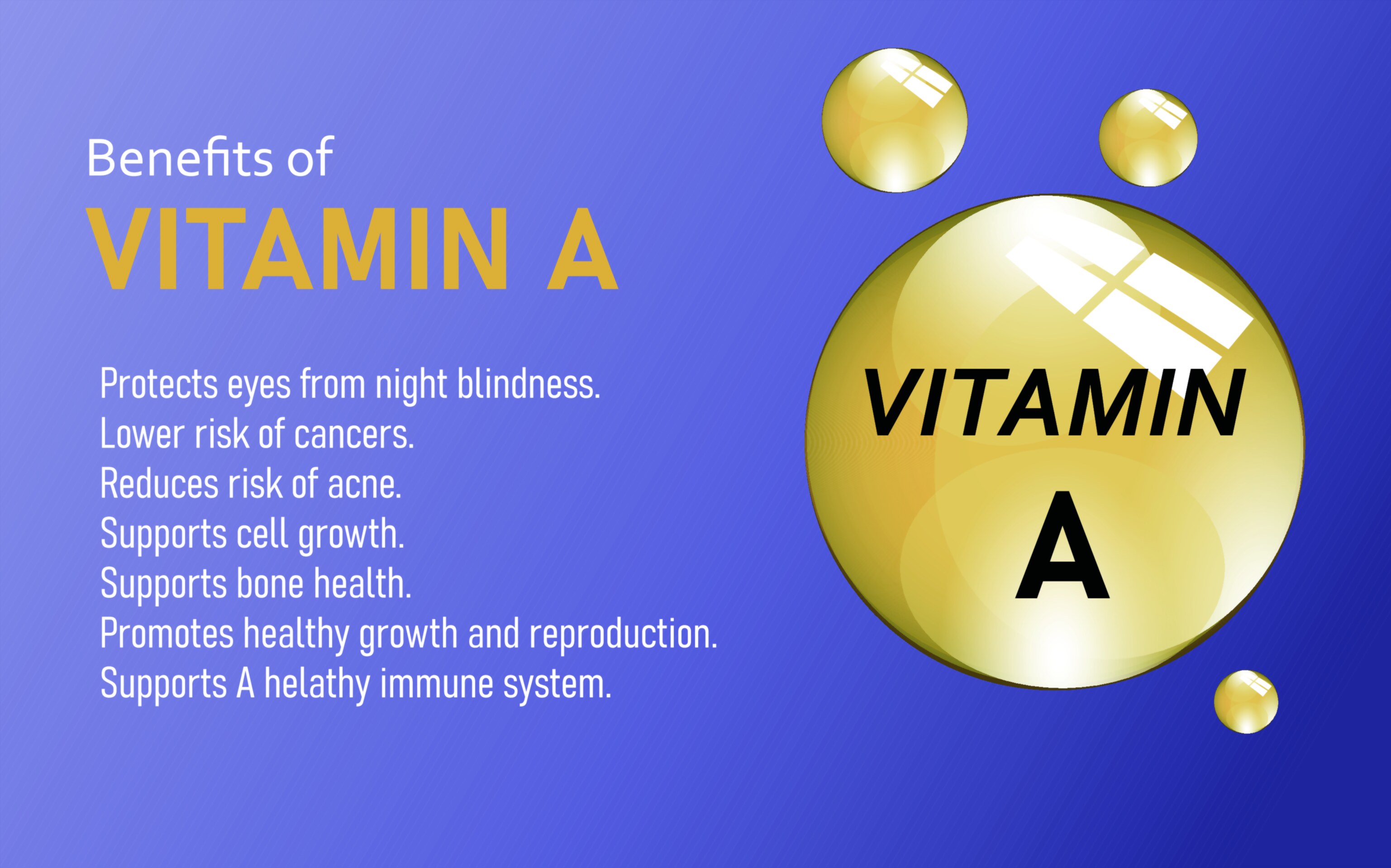 Vitamin A — Nutritional Sources and Health Benefits Conveyed Through a Vector Illustration of Vision, Immunity, and Cellular Growth