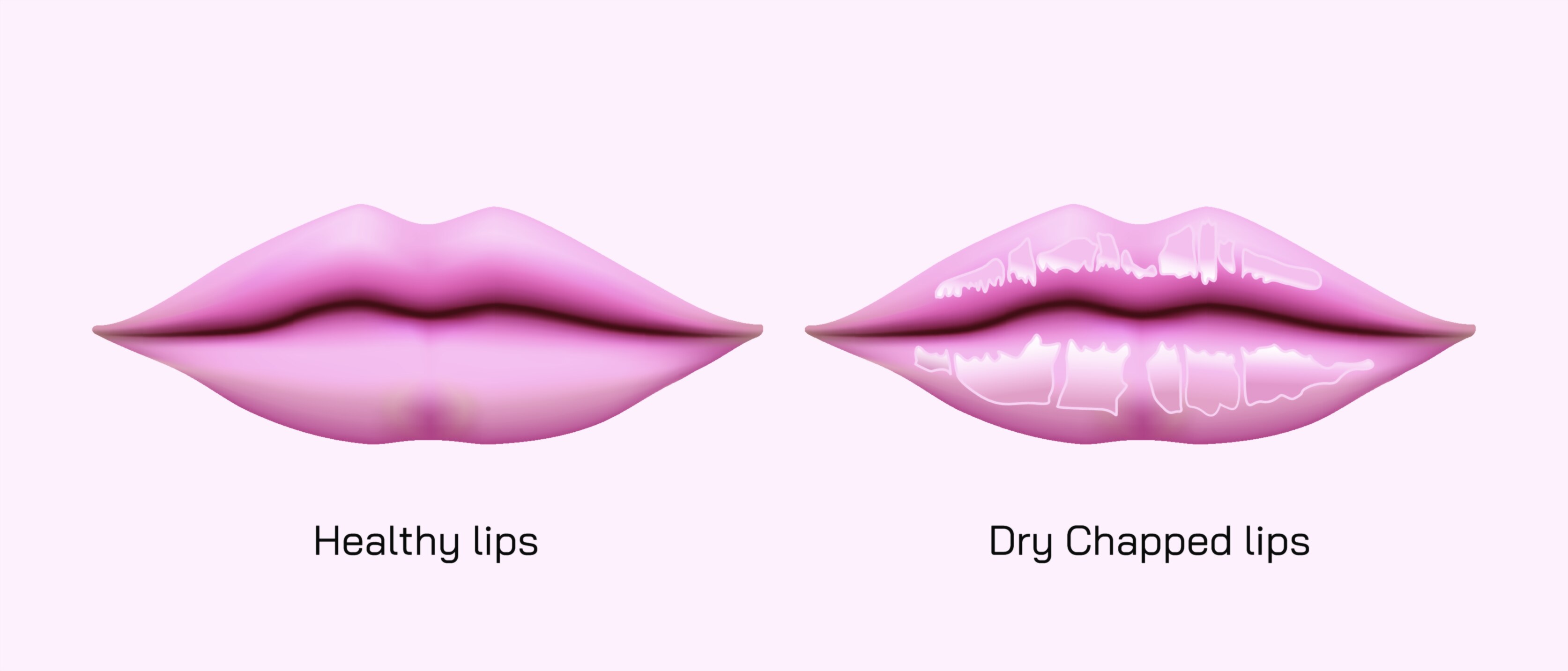A comparison between healthy lips and chapped lips helps clarify this cycle visually and biologically. In a healthy state, the lip surface appears evenly colored, smooth to the touch, soft when pressed, and free of peeling. The natural moisture barrier, composed of lipids and water, remains intact. Even small interactions such as smiling, speaking, or eating do not create discomfort because the skin is flexible and well supported. In contrast, chapped lips show visible symptoms of distress: rough texture, flakiness, fine cracks or deep splits, tightness when smiling, burning or stinging sensations, and increased sensitivity to spicy, salty, or acidic foods. In severe cases, the lips may bleed, scab, or become inflamed. This painful transition does not happen suddenly; it unfolds gradually as the barrier that protects the lips from moisture loss becomes weaker and weaker.
