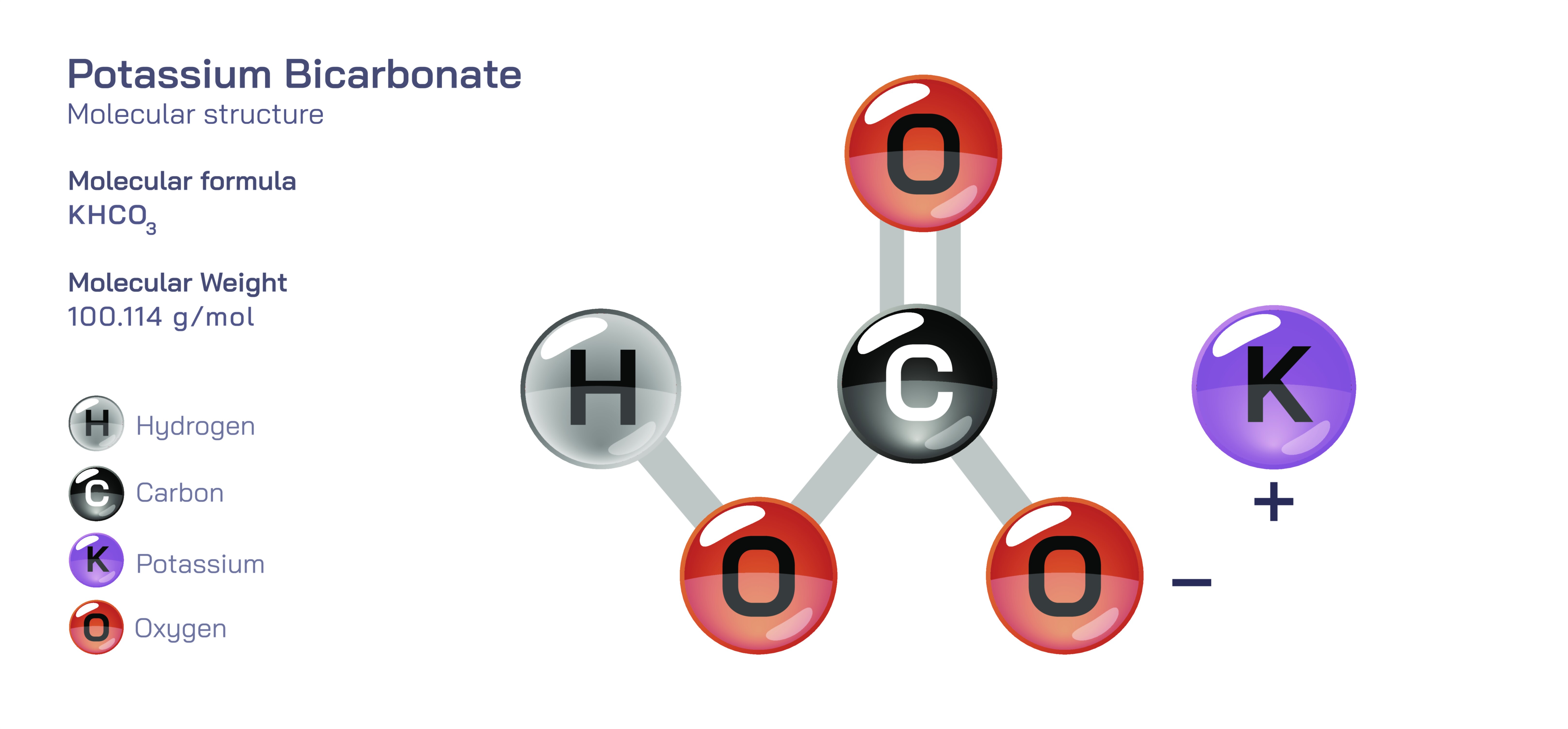 Potassium bicarbonate is a versatile inorganic compound widely used in food chemistry, agriculture, fire safety, pharmaceuticals, and environmental management due to its balanced alkalinity, gentle reactivity, and high solubility. Chemically, it is represented by a salt formed from potassium ions and bicarbonate ions. The bicarbonate ion originates from carbonic acid and consists of a carbon atom bonded to oxygen atoms in a molecular arrangement that allows the compound to act as a mild base capable of reacting with acids while releasing carbon dioxide. Combined with the potassium ion, this structure forms a stable crystalline solid that is white, odourless, and freely soluble in water. When dissolved, potassium bicarbonate dissociates completely into Kโบ and HCOโโป ions, creating a buffering environment that helps regulate pH without causing corrosive changes. This gentle chemical behaviour explains why potassium bicarbonate finds widespread use in biological systems, food formulations, controlled agricultural nutrition, extinguishing agents, and medical preparations. While simple in composition, the bicarbonate structure gives the compound broad effectiveness across chemical, physiological, and industrial processes.