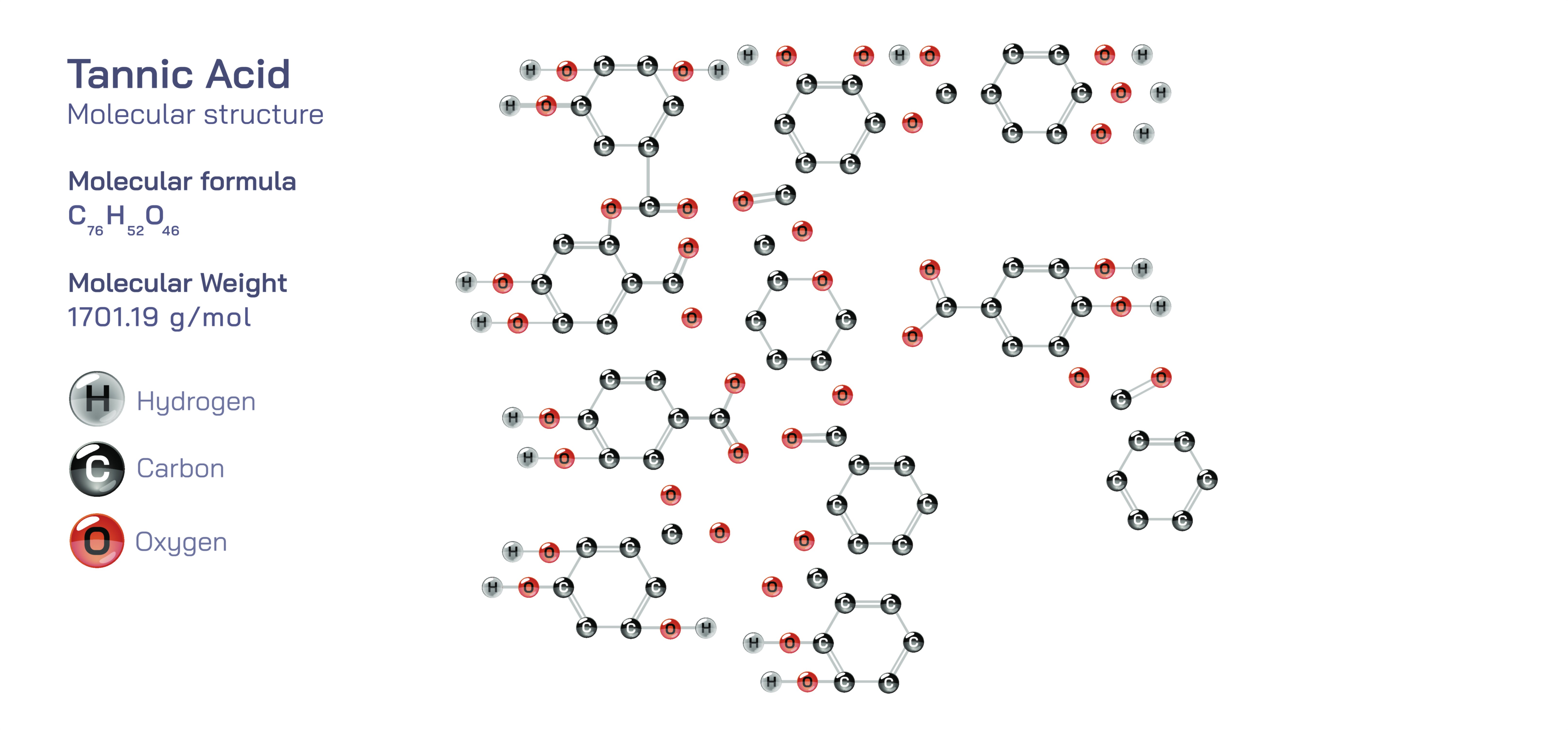 Ultimately, tannic acid highlights the elegant complexity of natural chemistry. It is at once a structural carbohydrate derivative, a phenolic antioxidant, a protein-binding macromolecule, a reactive organic acid, and an industrially useful biochemical material. Its large, branching structure explains its enormous versatility, and its natural occurrence reminds us that biological molecules—including those that create taste, sensation, protection, and preservation—are deeply rooted in the same principles of bonding, resonance, functional groups, and reactivity that govern all of chemistry. Understanding tannic acid allows learners to connect molecular logic to plant biology, food science, medicine, material technology, and environmental science, revealing how profoundly chemistry shapes the natural and human world.