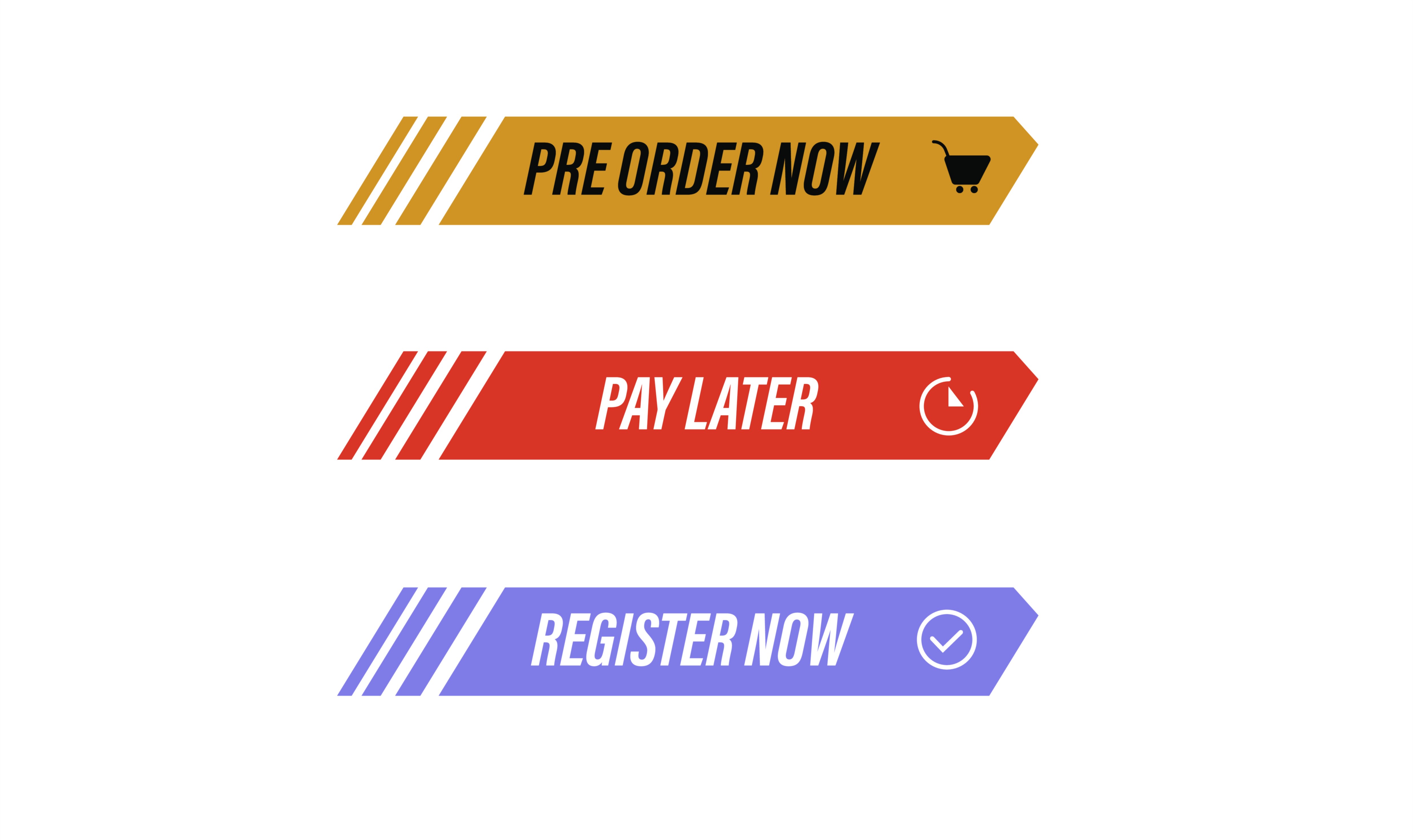 A Pre Order Now Pay Later Register Now vector illustration for modern eCommerce UI design is more than a simple button, badge, or banner. It is a psychologically layered call-to-action built for moments when excitement, urgency, and hesitation overlap inside the customer’s mind. It combines three distinct emotional triggers in one interaction — the desire to secure a product before launch (“Pre Order Now”), the relief of not paying the full amount immediately (“Pay Later”), and the exclusivity of joining a priority list before others (“Register Now”). When these motivations are aligned visually and contextually, the button becomes one of the most powerful conversion elements in digital commerce, because it supports human emotion rather than forcing a fast decision.