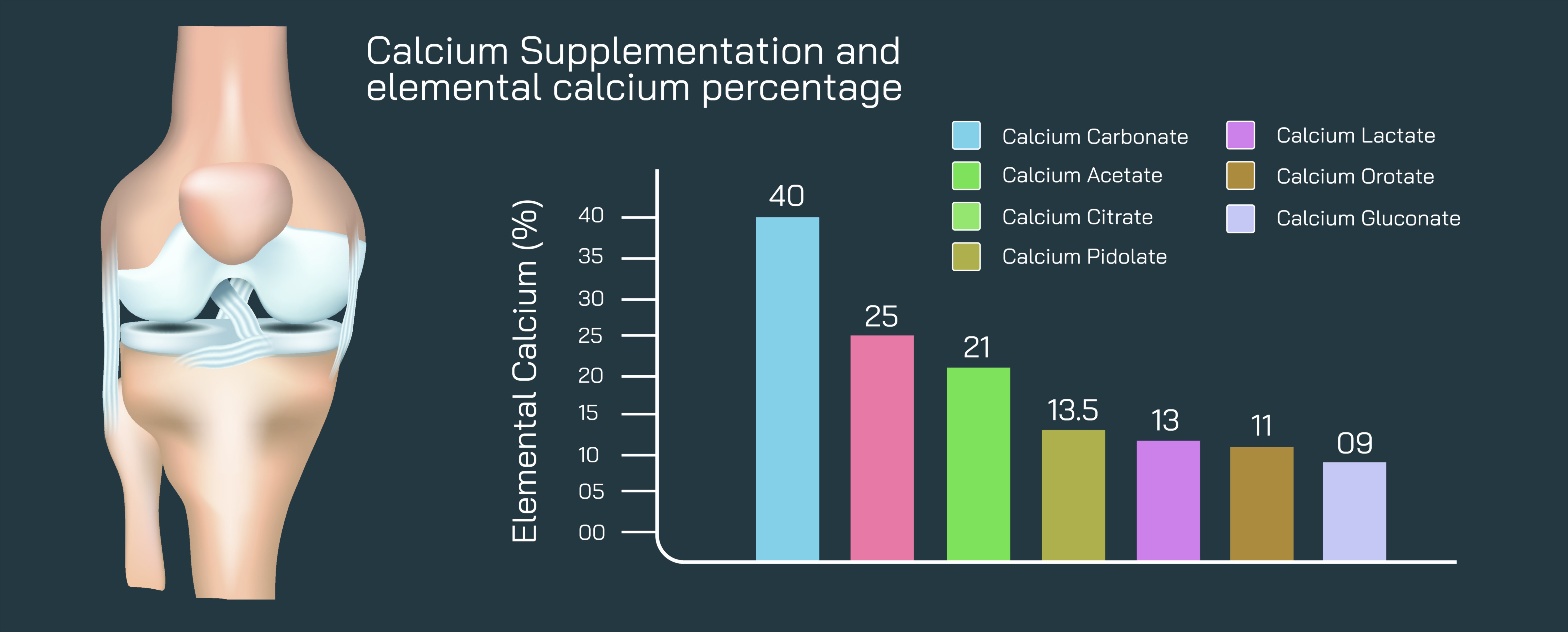 Calcium Supplement Vector Illustration Showing Composition and Elemental Calcium Percentage for Bone Health
