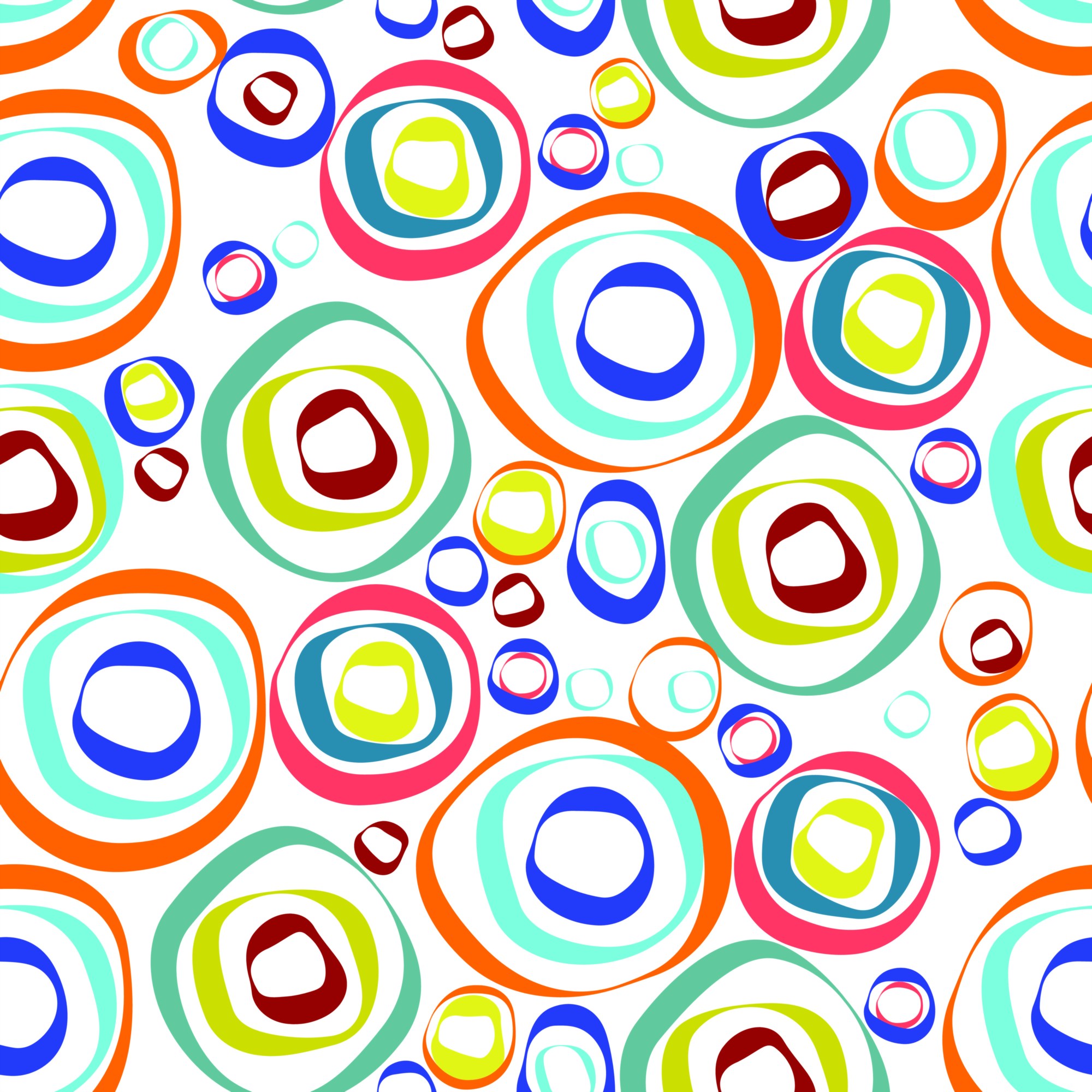 The design features interconnected circles and molecular structures arranged in a repeating pattern, conveying scientific concepts like molecular interactions, atomic bonds, and chemical structures while maintaining aesthetic elegance. Each circular motif is carefully crafted with colorful accents, gradient effects, and varying line thicknesses to highlight depth, structure, and dimensionality. The clean white background enhances contrast and clarity, making the colorful molecular elements stand out prominently.