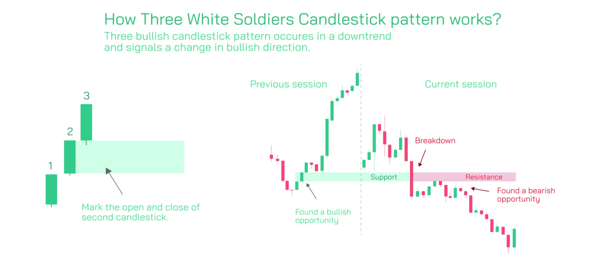 This pattern also serves as a measure of market psychology, demonstrating a shift from fear to confidence among traders. Recognizing the Three White Soldiers helps traders avoid entering trades too early during weak reversals and ensures participation in strong bullish trends. Additionally, combining this pattern with trend indicators and momentum oscillators increases the probability of successful trades.
