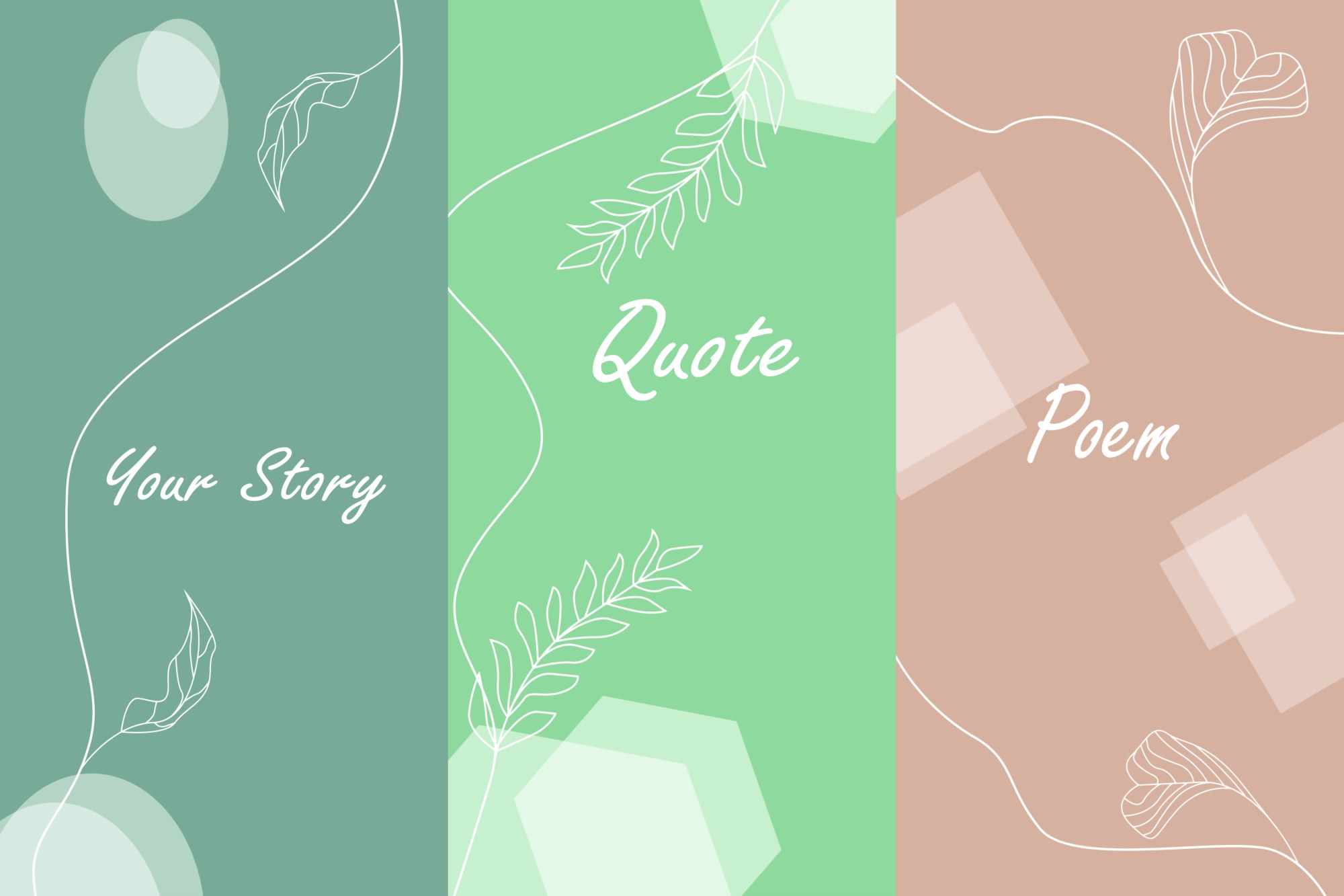 Because the illustrations are fully vector-based, they provide complete editing freedom. Designers can adjust colors and modify emblem shapes to suit different story themes, poetic moods or brand identities. The smooth gradients and abstract patterns integrate seamlessly with both minimal and expressive text styles. Whether the goal is to present a short motivational quote, a small lyrical excerpt, or a reflective story, the backgrounds adapt easily. Their flexibility also makes them ideal for print materials, digital posters, event branding, literary workshops and social media storytelling where strong visual identity influences engagement.